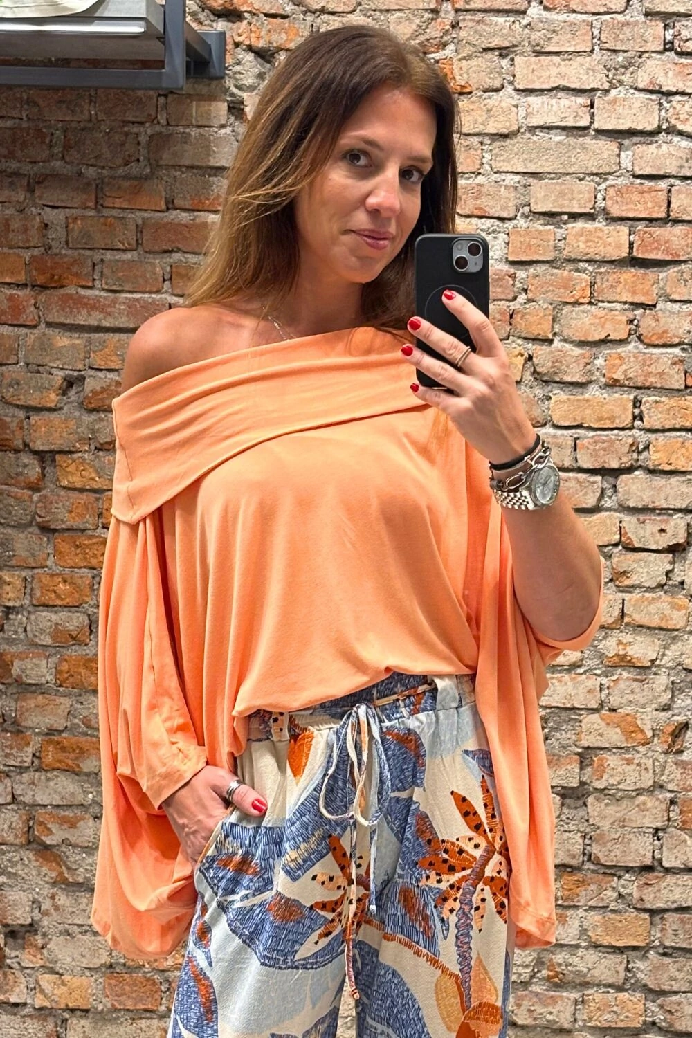 Linda blusa. Tenho 1.75m de altura e peso 73kg e o tamanho foi perfeito. Tecido extremamente fresco, de qualidade e confortável. Blusa ampla e maravilhosa.