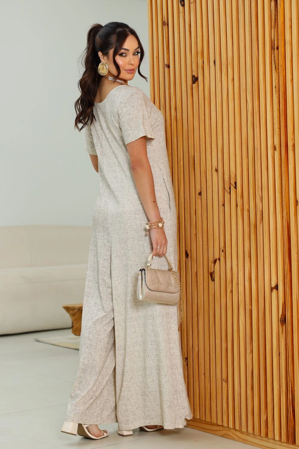 Nosso macacão Dulcinéia tem bolsinhos laterais, decote V e um caimento impecável, moderno e despojado além de confortável, claro!
